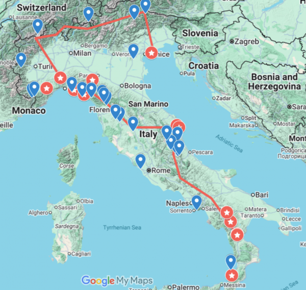 Ekspedīcija tiek veikta trīs posmos - no Kalabrijas līdz Venēcijai, ar atpūtas dienām pa ceļam.