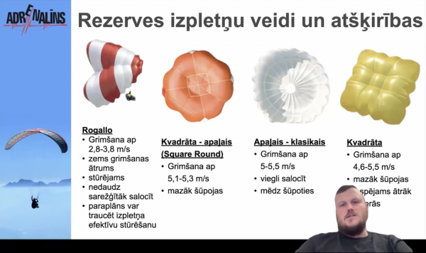 Decembrī tiešsaistē (Zoom) notika teorētiskā nodarbība par rezerves izpletņa pielietošanu paraplanierismā. Lekcijā izgājām cauri svarīgākajām tēmām, kas palīdz saprast kad un kā rezervi mest, ko sagaidīt reālā stresa situācijā, un kā samazināt risku ar pareizu sagatavošanos un treniņu.