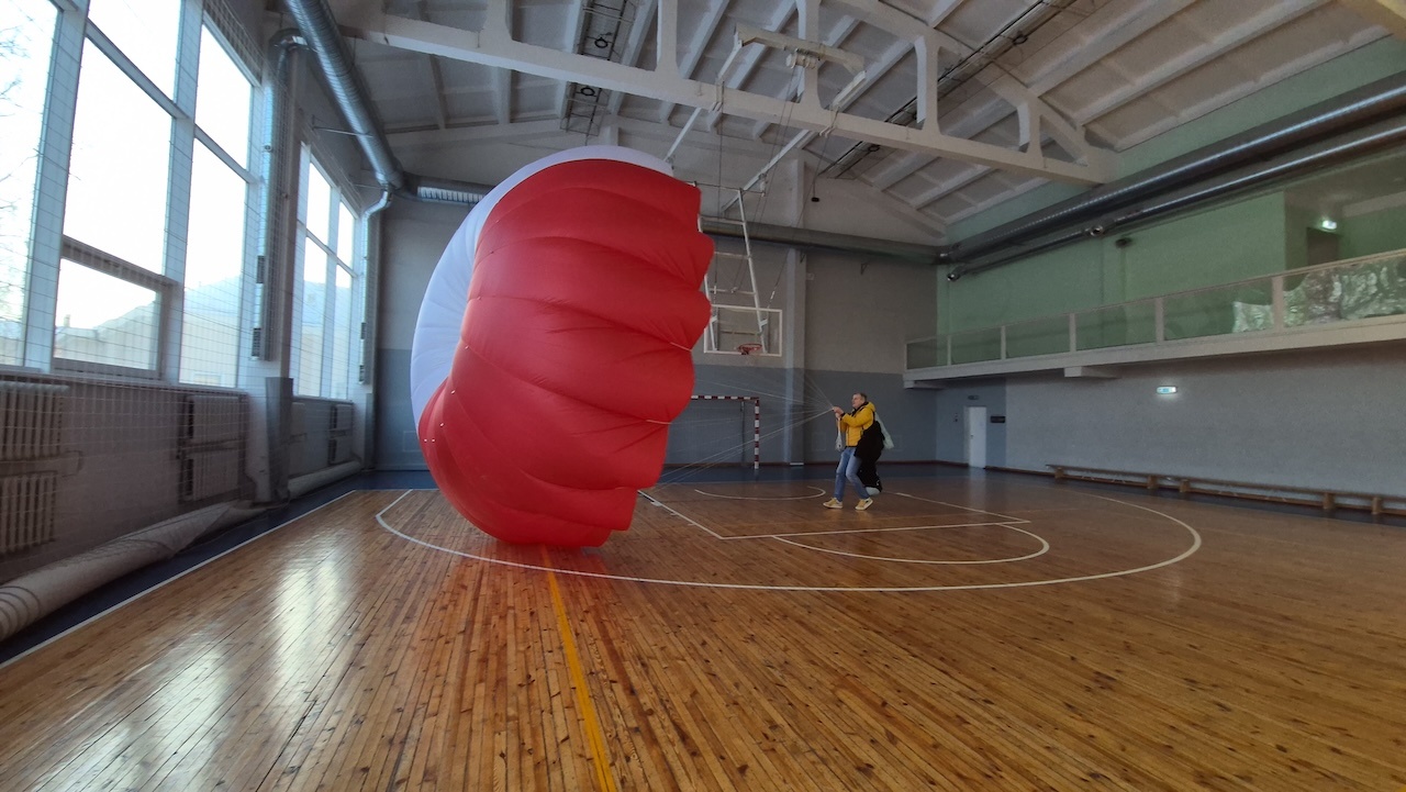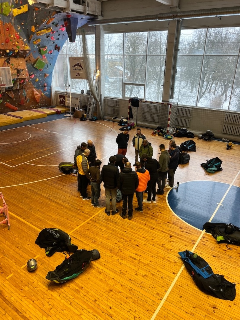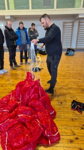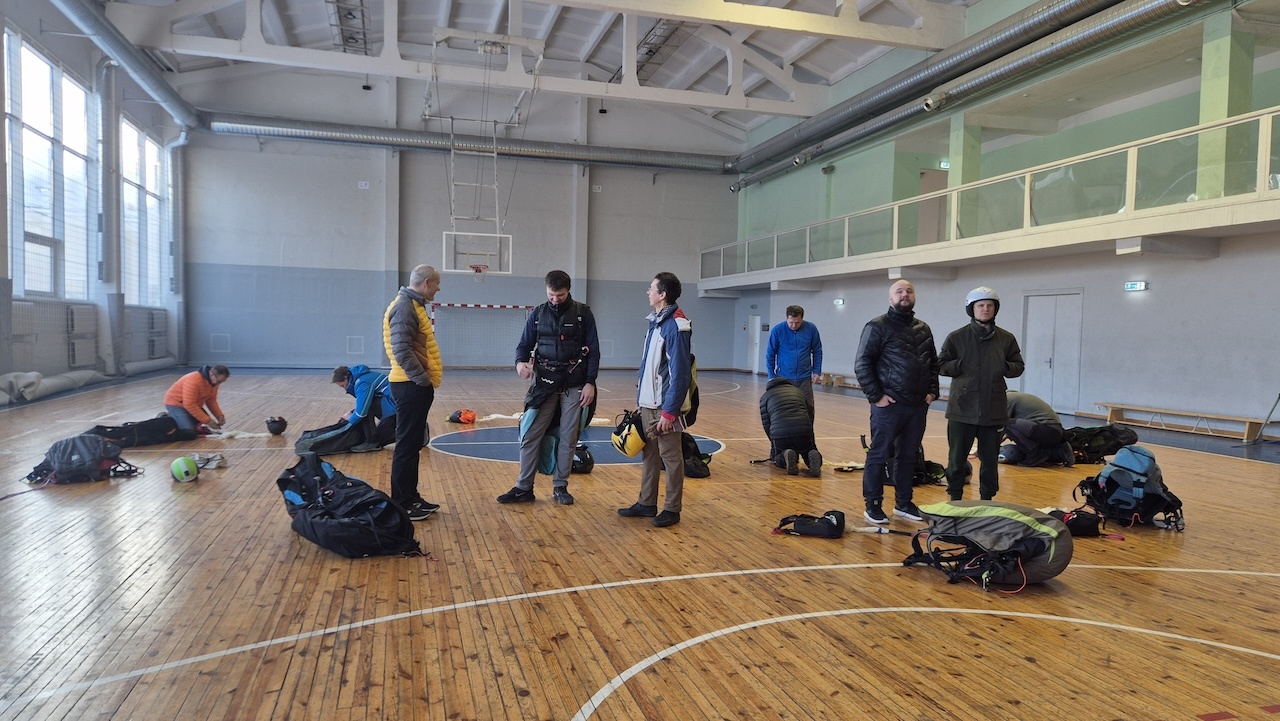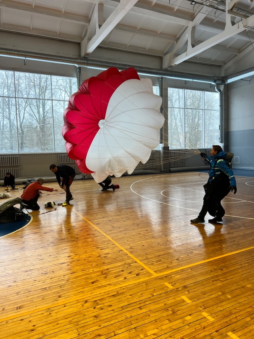 Aizvadījām praktisko nodarbību, kurā trenējām vienu no svarīgākajām drošības prasmēm paraplanierismā - rezerves izpletņa mešanu.